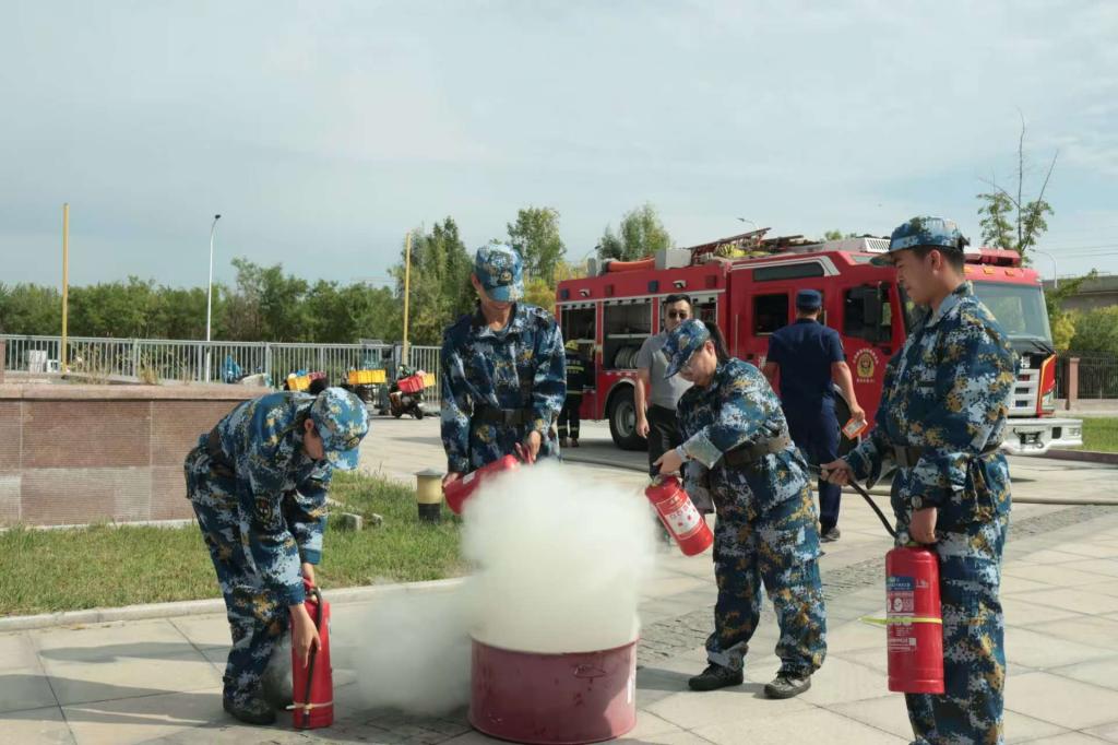 疏散演练结束后,团泊消防站的官兵们为同学们带来了一场生动实用的消防技能培训。消防员首先结合高校典型火灾案例,深入浅出地讲解了火灾预防、初起火灾扑救、火场逃生技巧等基本知识。随后,在现场实操环节,消防员详细演示了干粉灭火器的正确使用方法和注意事项,并指导同学们分批进行“真火”灭火体验。同学们踊跃参与,在消防员的保护下,亲手操作灭火器成功扑灭油盆火,在实践中掌握了这一关键技能。