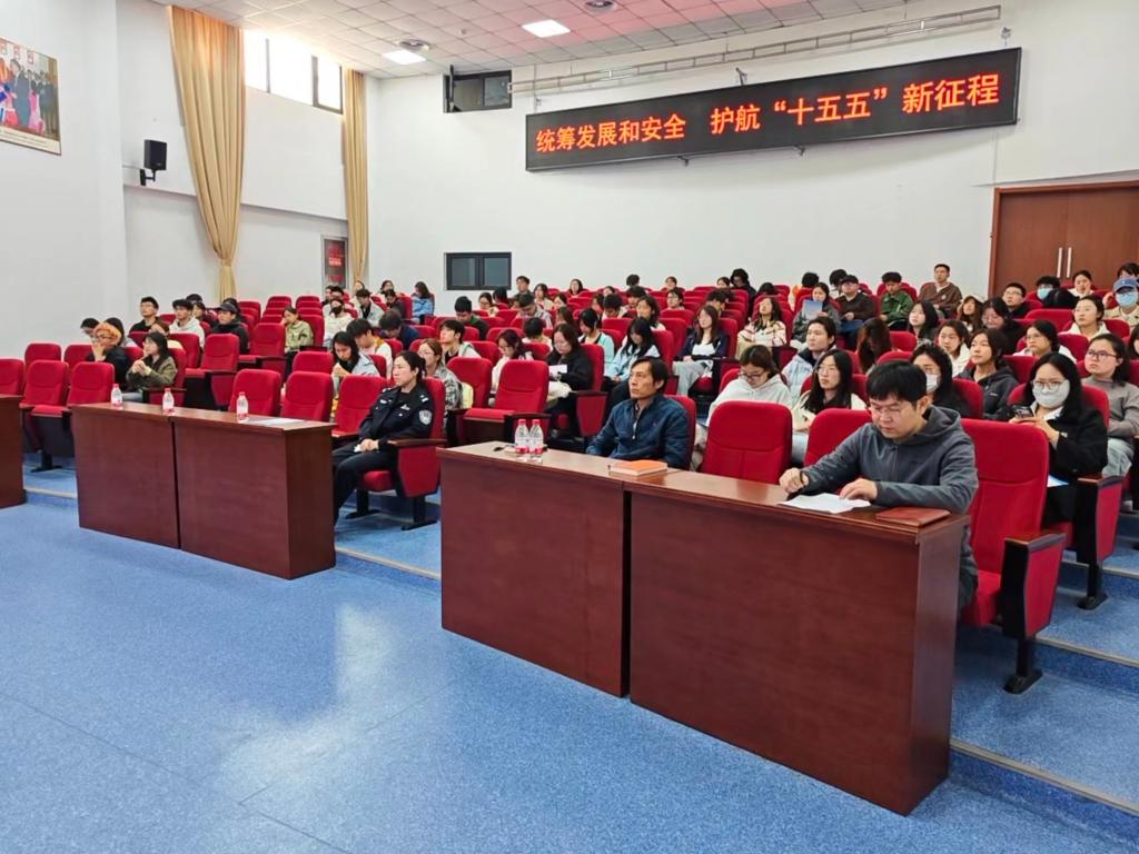 今年4月15日是第十一个全民国家安全教育日。为增强师生国家安全意识,提升校园安全防范能力,4月14日下午2:30,我校特邀华康派出所罗扬警官来校,在国际学院一楼报告厅为师生作国家安全主题宣讲。